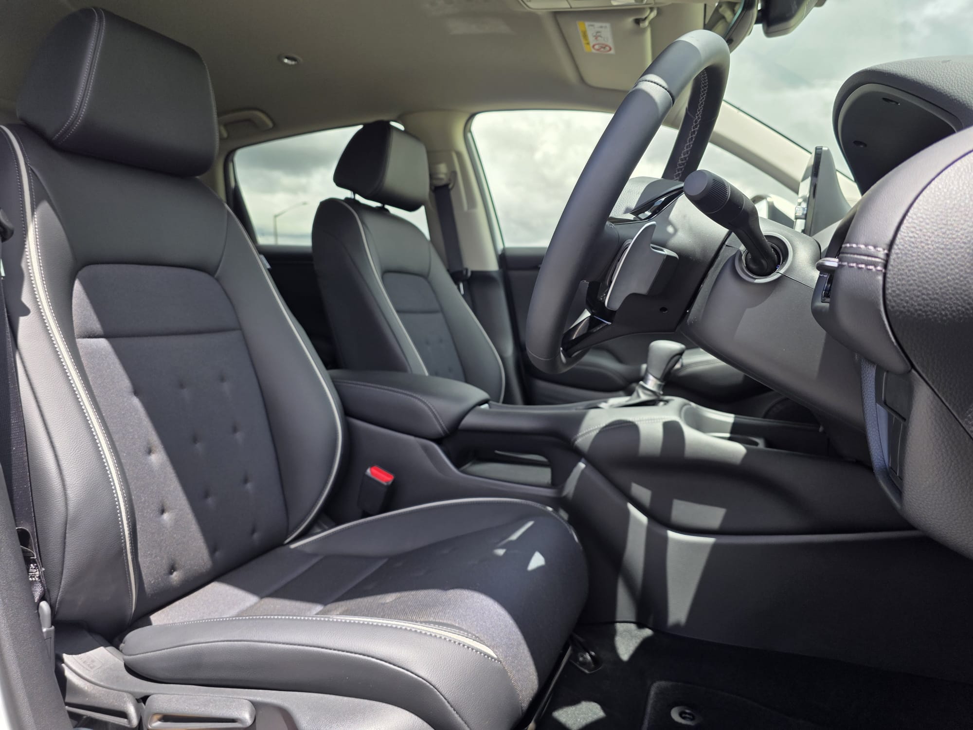 fabric and synthetic leather seats